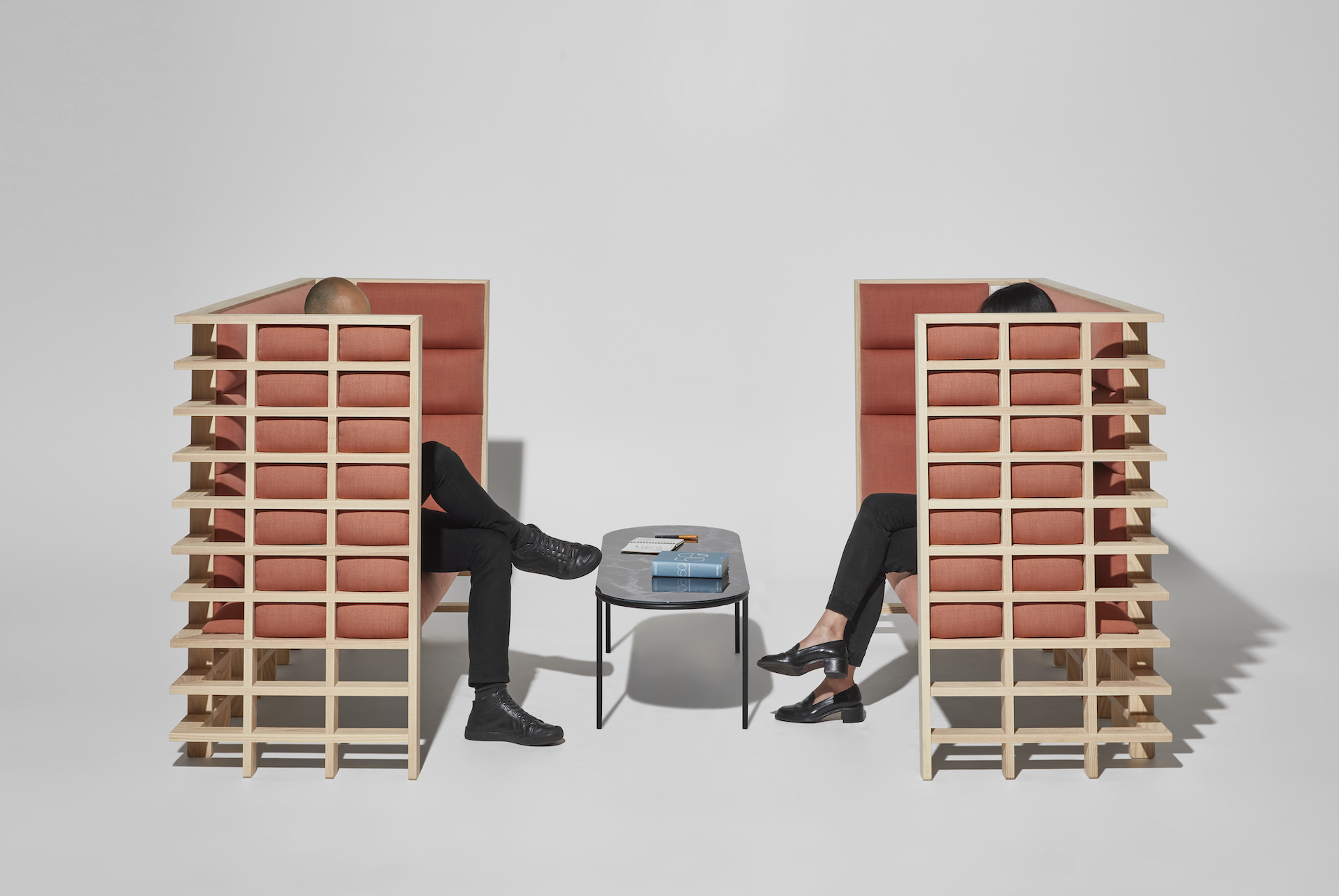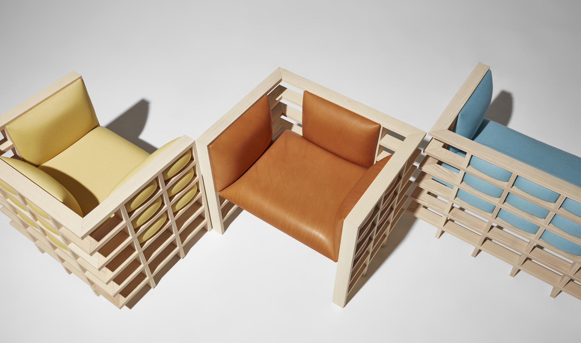 The Mochi range is a collection of seating which is defined by crisp edges and a consistent use of repetition. The highly rectilinear forms place an emphasis on the regular intervals that are created through simple, geometric spacing.