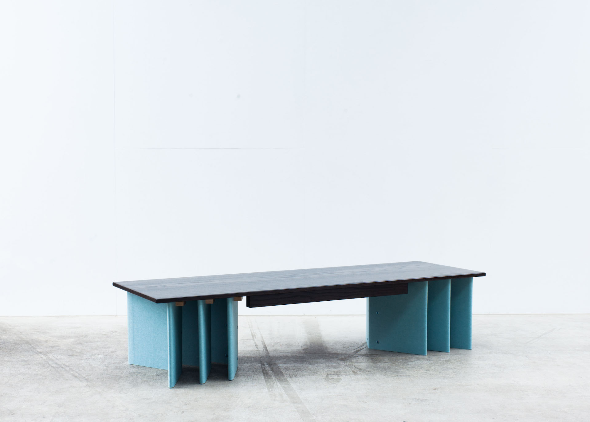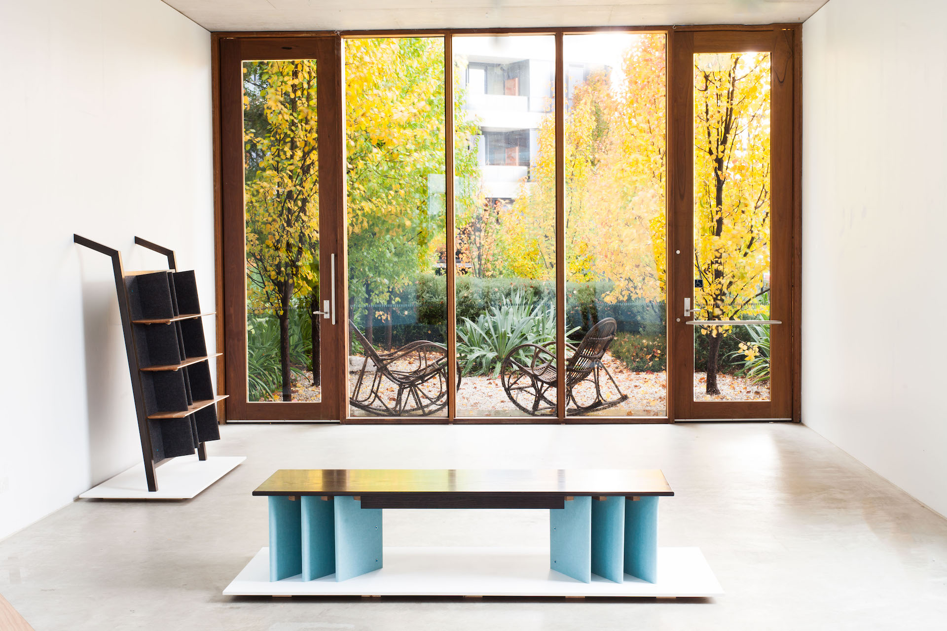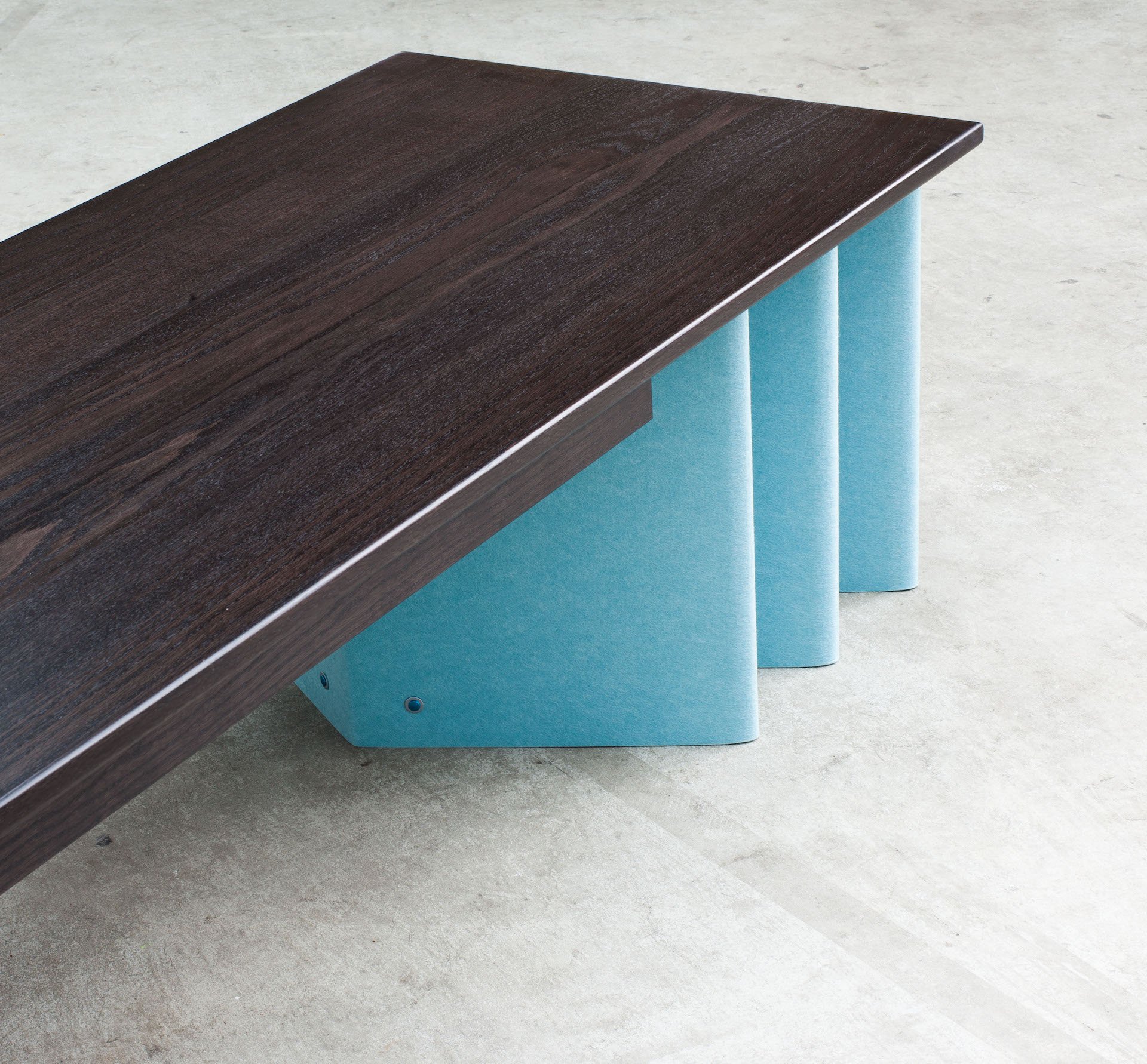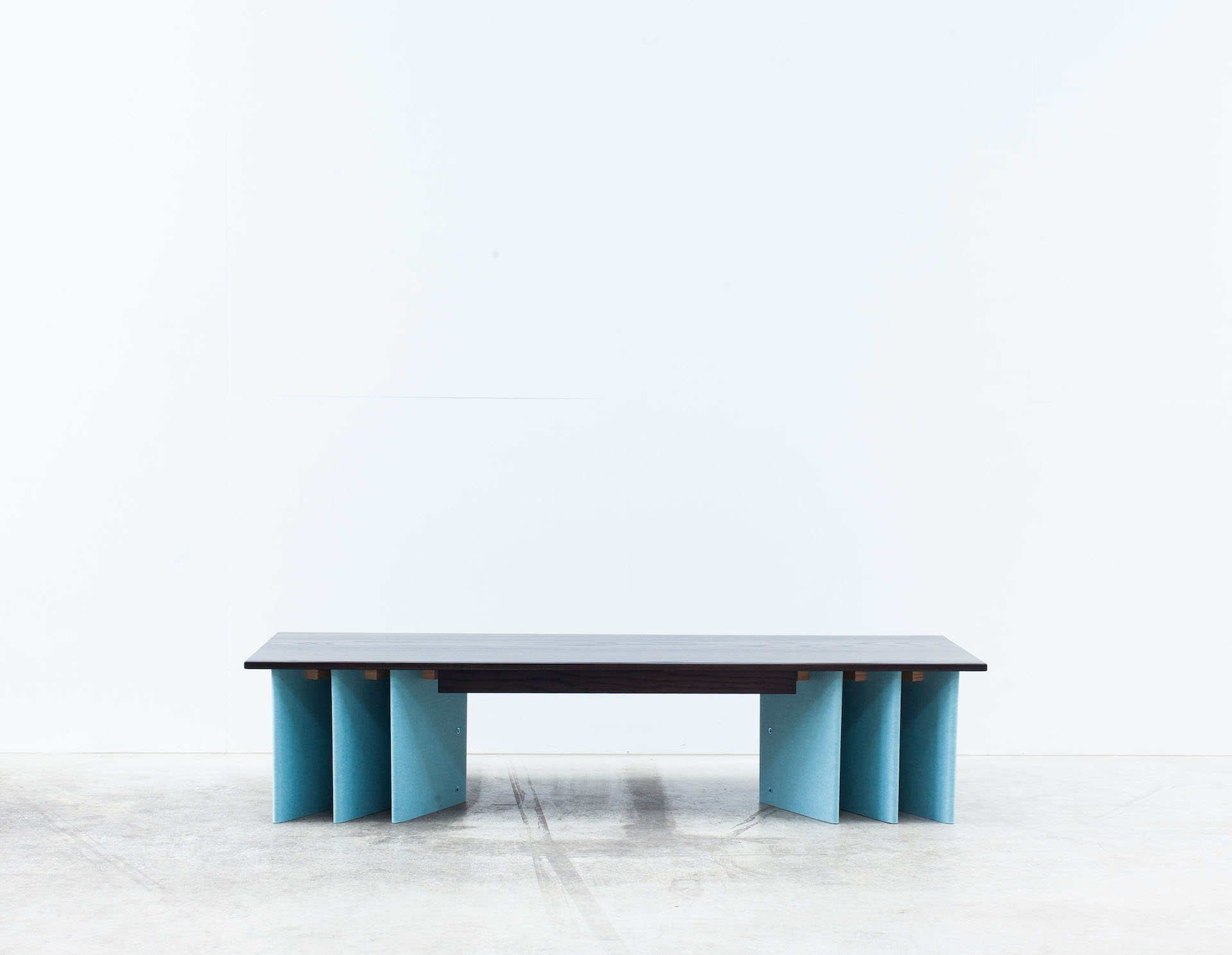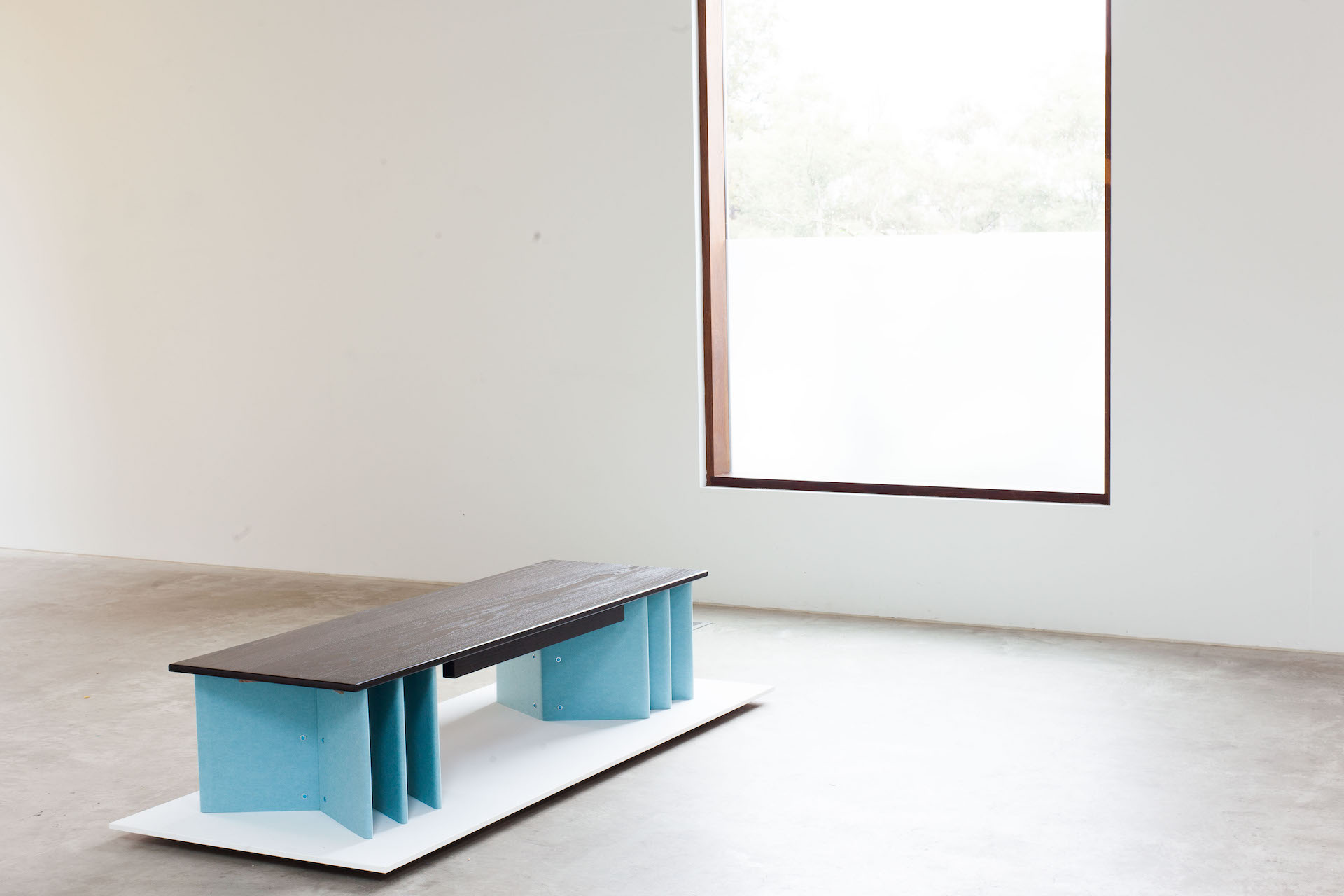 A bench seat that uses six individual sheets of EchoPanel® to function as an underframe, turning a non-structural material into a supportive element. It's an extension of the ideas presented in Orientation and echoes a 'strength in numbers' approach to design solutions. A timber frame on the underside removes any chance of deflection and ensures the top remains flat when used.